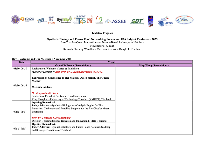 Join us for three days of groundbreaking research presentations, networking opportunities, and cultural experiences in the heart of Bangkok. Our comprehensive program features leading experts from around the world sharing the latest advances in synthetic biology, future food systems, and sustainable technologies.